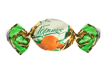 В конфете Королевский абрикос с миндалем в йогуртовой глазури целый плод солнечного абрикоса с миндальным сердечком внутри в великолепном шоколаде.